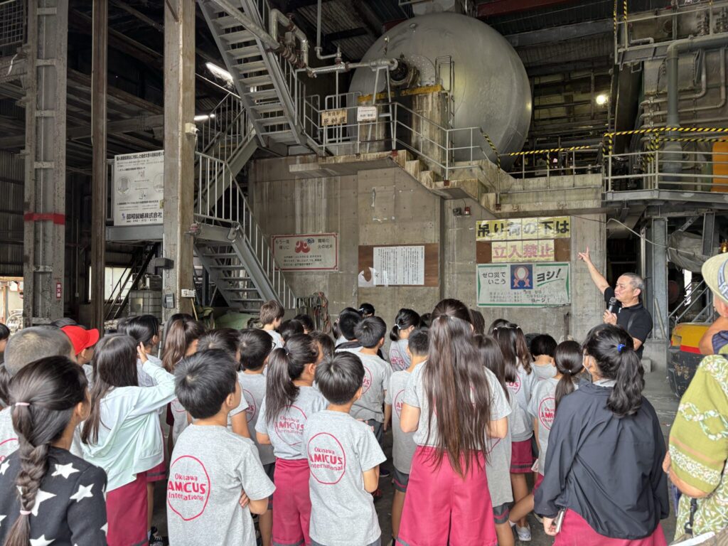 10月24日金曜日、うるま市に昭和製紙工場へ校外学習に行きました。ここではウチカビ、板ちり紙、古紙をリサイクルしてトイレットペーパーを作っています。うるま市内から集まった古紙が地球窯と呼ばれる大きな機械やカッターなどを使い1つのトイレットペーパーになる行程実際に見学をしました。未来を考え、自然に優しい無駄のない取り組みに感動です。その後はあやはし館2階にある海の文化資料館でマーラン船など昔のうるま市の交易様子を学びました。