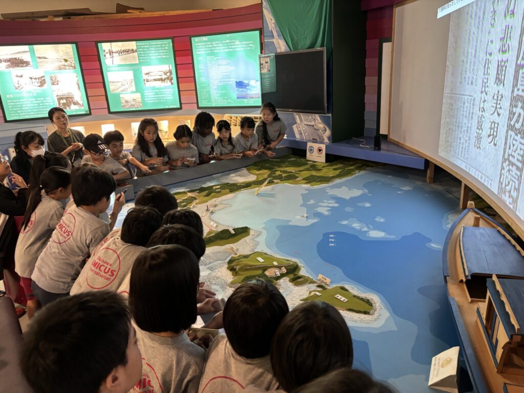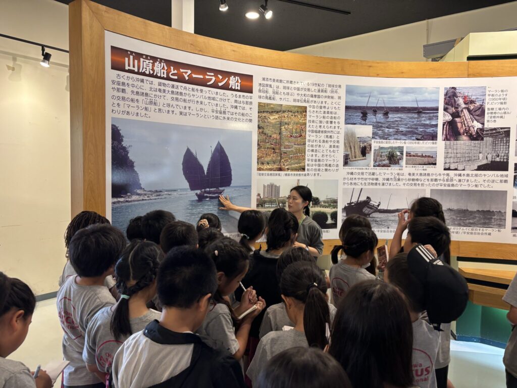 It was impressed by their eco-friendly and waste-free work for the future.After that, we visited the Sea Culture Museum on the 2nd floor of Ayahashi Hall.We learned about old trading in Uruma City and saw the “Maran” boats.