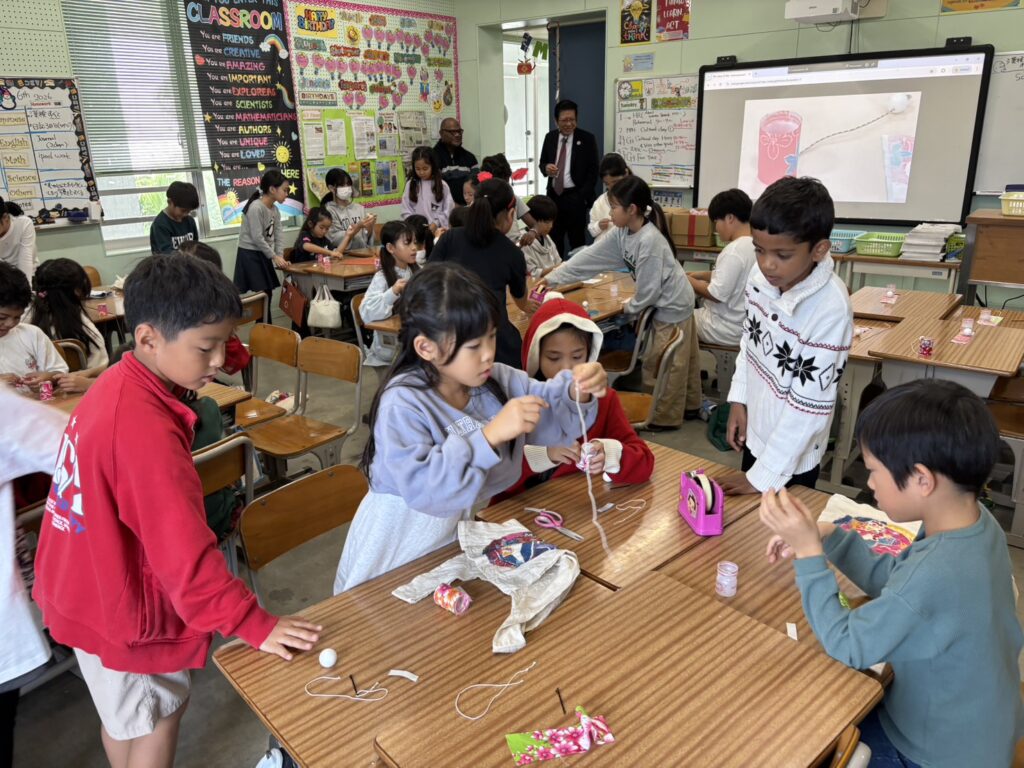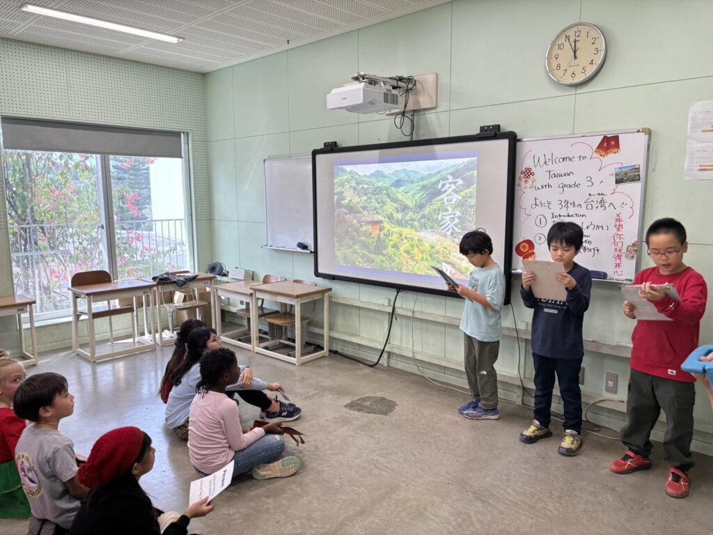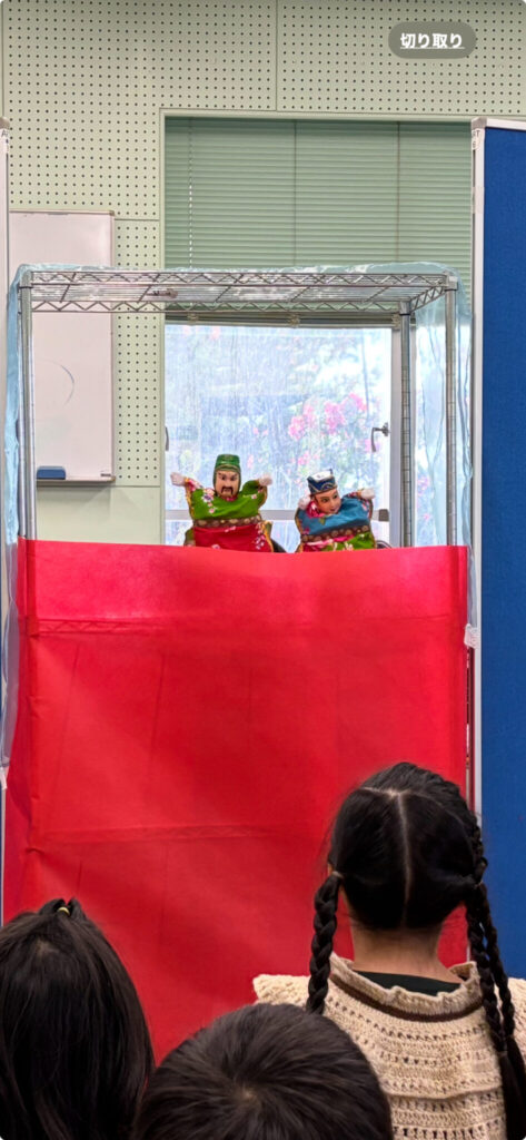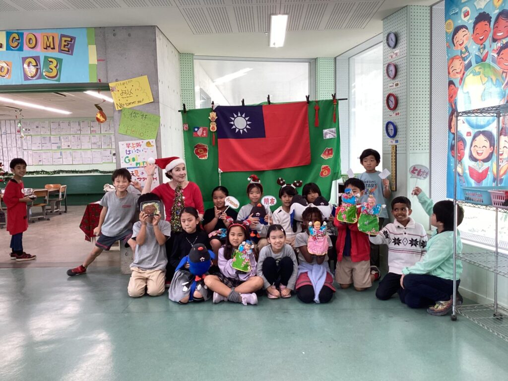 今日は1年生から6年生までカルチャーデーがありました。3年生は台湾のプレゼン、客家族に伝わるお話を人形劇で、そして客家族の伝統柄の花柄布でけん玉作りをお客様に説明をしてもてなしました。みんな大満足。午後はさらにスナックパーティーにプレイ、ムービータイムと最高な1日でした。また来年会いましょう。良いお年を。Today our cultural day finished successfully.The hakka puppet show,Taiwan presentation,and making Kendama using hakka clothes. They did super great job.We hope you will have a great chiristmas and happy new year.