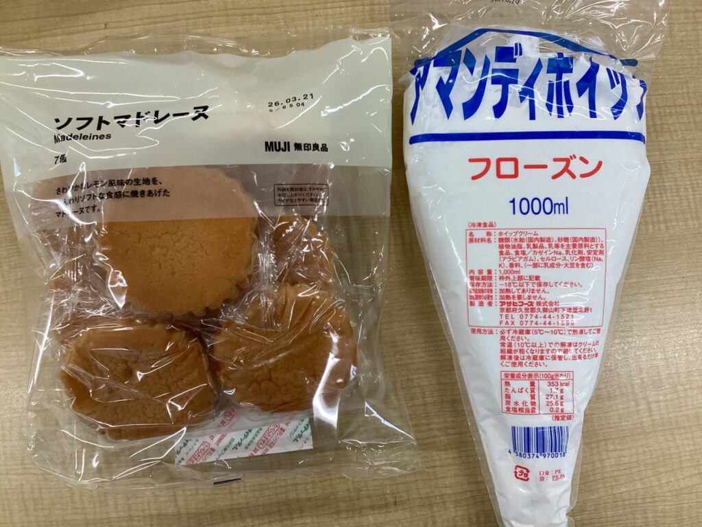 明日のマフィンデコレーションコンテストでつかうクリームとマドレーヌの情報です。ご確認下さい。