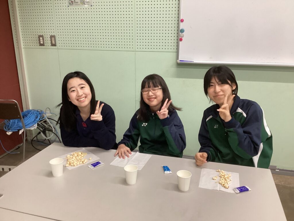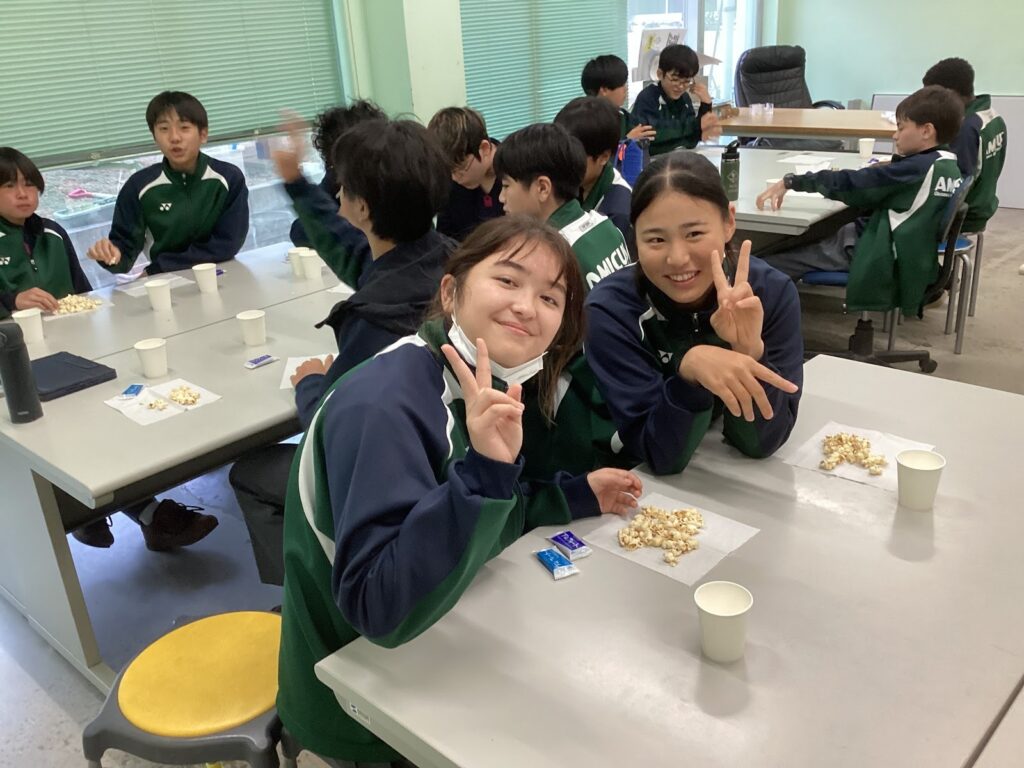 男子がじゃんけんをしてジュースを分け合っていたので、女子のほとんどは一杯