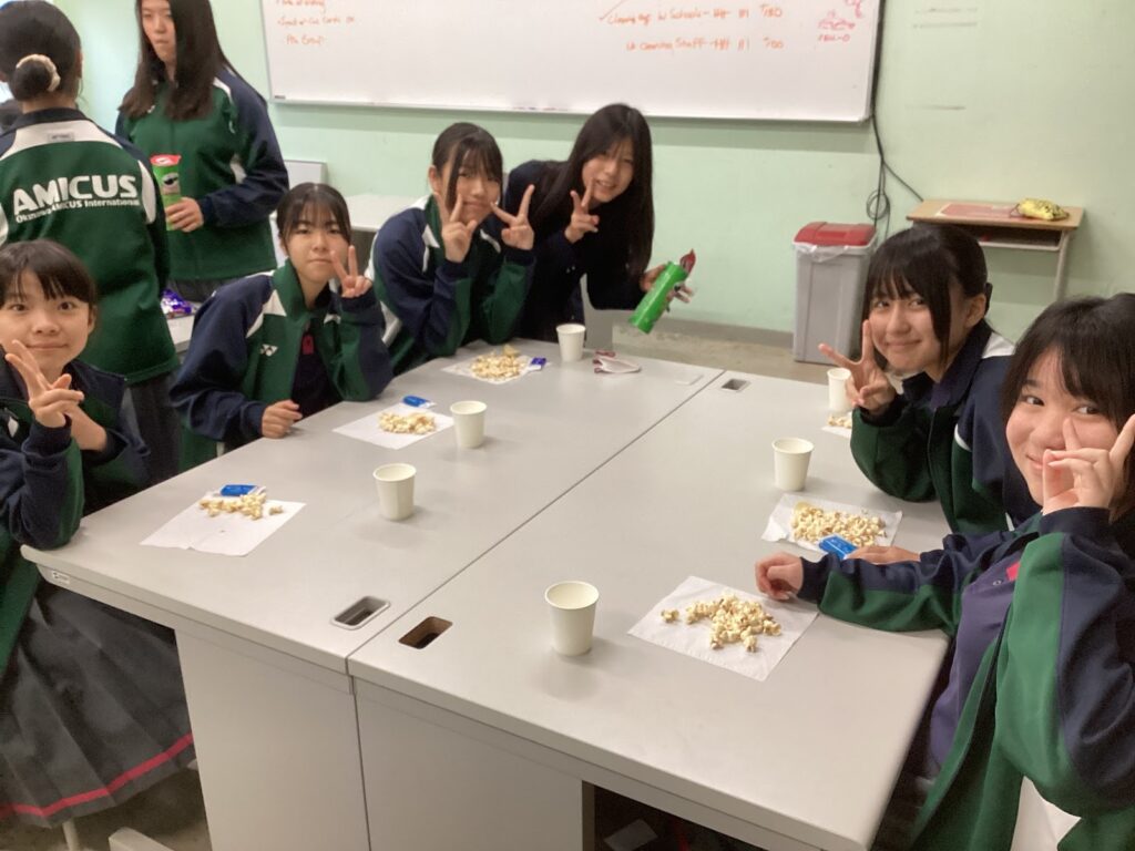 スナックパーティーをしました!みんな友達とお菓子を食べて楽しそうでした。