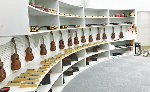 豊かな自然に囲まれたアミークスの敷地は約22,000坪の広さがあり、起伏にあわせた低層の校舎が並んでいます。小学校低学年棟・中学年棟・高学年棟・メディアセンター・多目的ホール・管理棟が回廊でつながっており、大きな吹き抜けの回廊と中庭は子どもたちの憩いの場や遊び場として常ににぎわっています。