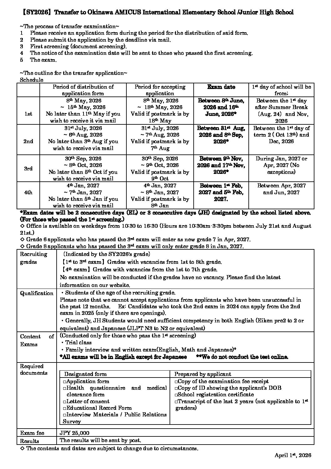 Please check the information for transfer exams in SY2026. If considering transfer, please refer to the following details.