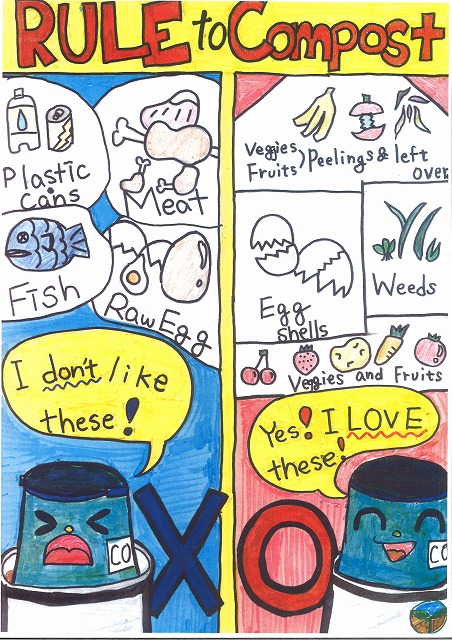 In our English class, we’re doing a media project for composting. (Composting is making soil from wasted food.) We divided the class into small groups then compete against other small groups. The best group will win!!