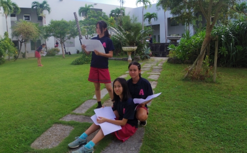 When the weather is nice, AMICUS students often spend time at the courtyard to read books, draw pictures and so on.