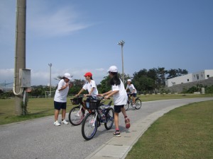 今年の2月に、本学園赤尾文夫理事長より32台の自転車の寄贈がありました。早速、体育の授業で先生の指導の下、自転車の乗り方を練習しました。グランドのまわりやグランド上にコーンを立ててカーブの曲り方などを練習しました。中には、生まれて初めて自転車に乗る子もいましたが、みんな上手に自転車を乗りこなしていました。先生からの指導をきちんと聞いて、車が来ても安全に乗り降りができていました。4月には警察の安全講習を受ける予定です。