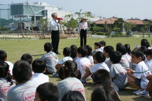 本校の家庭室から火災が起きたことを想定して、全校園児・児童を対象に避難訓練を行いました。