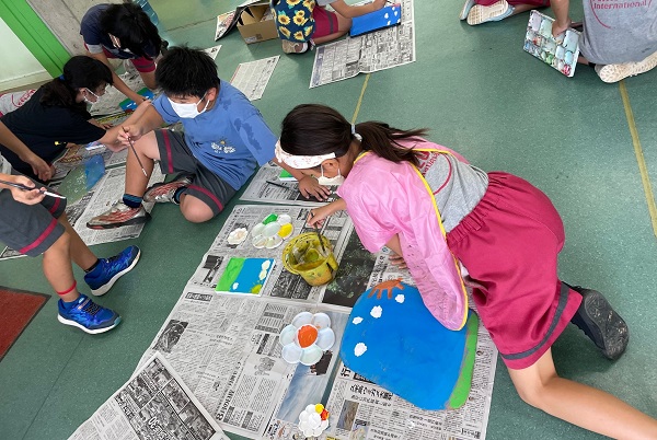 They learned about the art of picture book author Eric Carle, created paper cut-outs together, and then pasted them onto a colorful campus that the 3rd graders had prepared the day before.