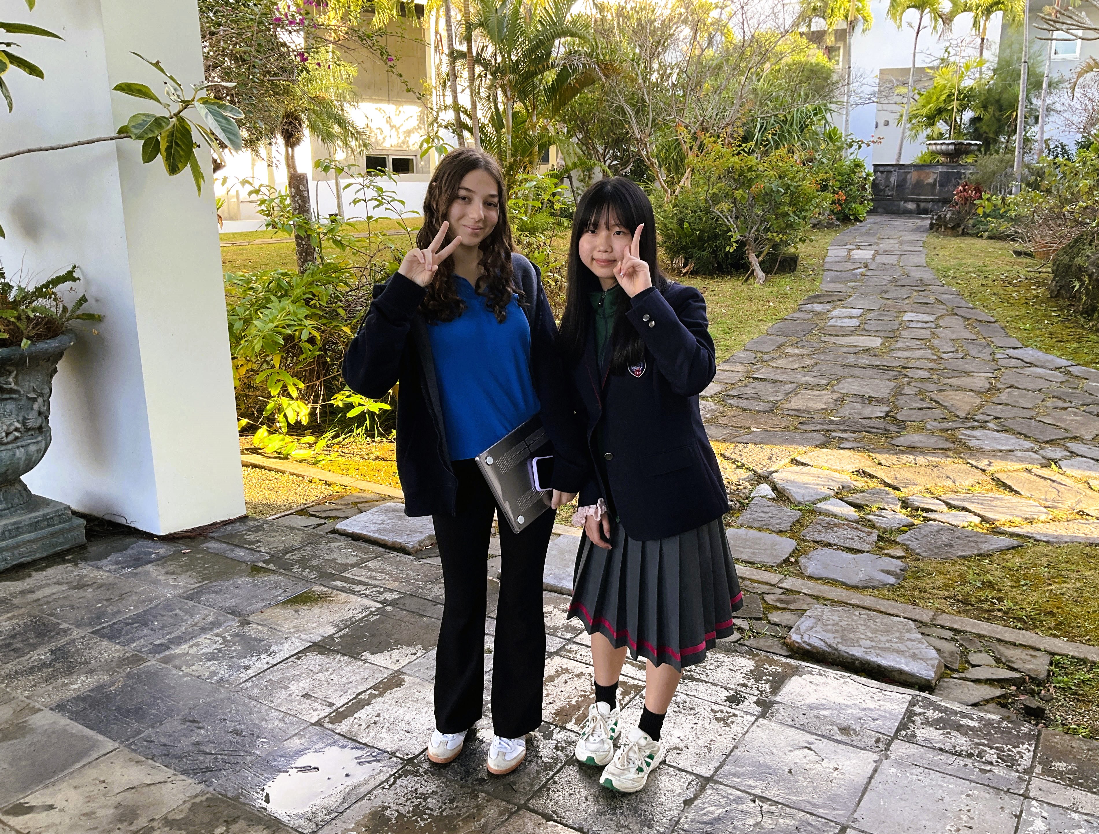 Two students from Singapore love Japanese ramen, curry with pork cutlet, and Okinawan soba (Okinawan noodle) very much! They are impressed by the variety of convenience stores! They also said Singapore has many skyscrapers, but Okinawa has many low buildings.