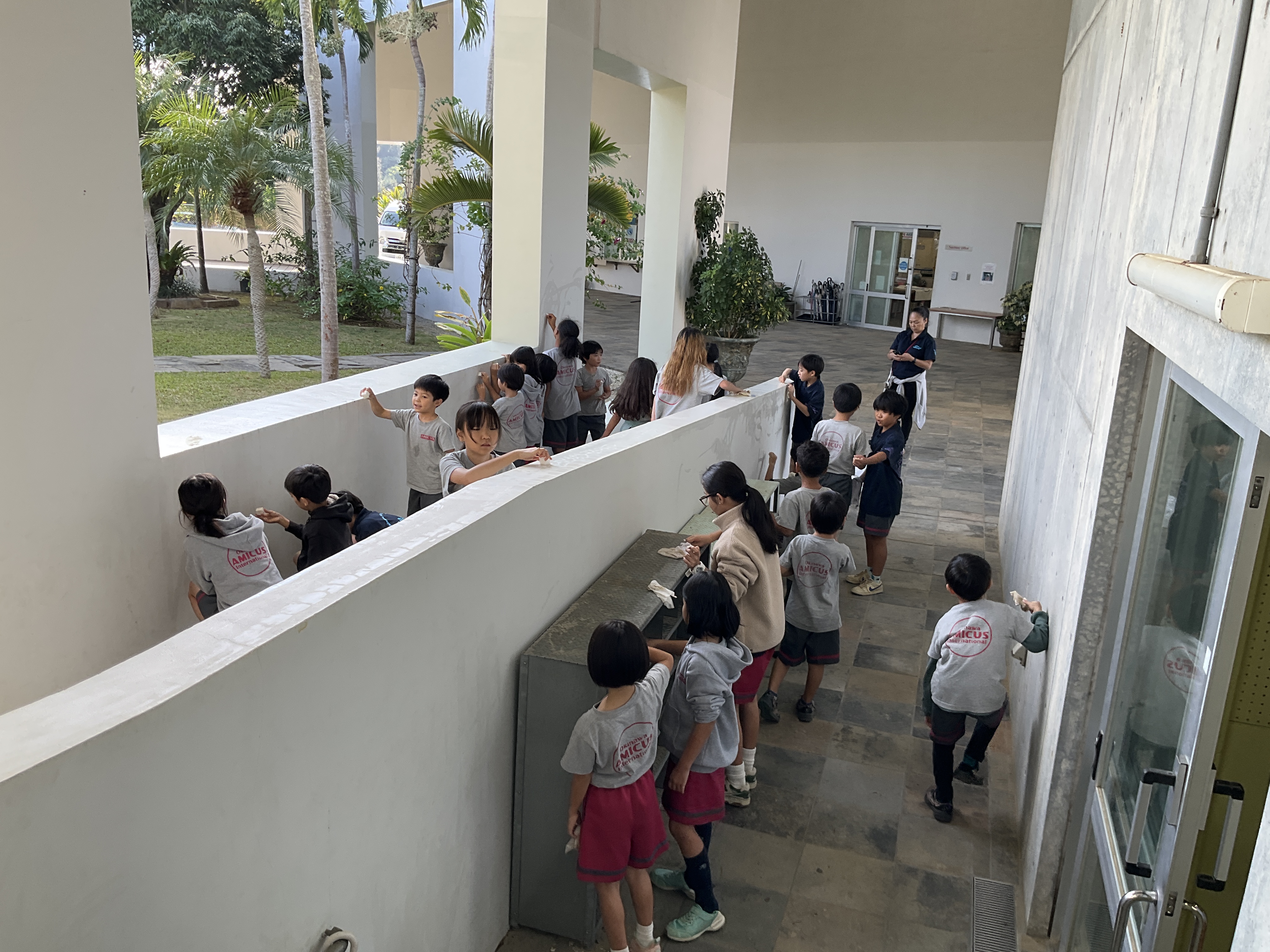 On Wednesday, December 10, during 6th period, students from Grade 1 to Grade 6 took part in a vertical cleaning activity in 23 mixed-grade groups.