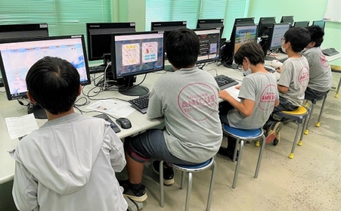 小学校1年生から5年生まで、プログラミングに興味のある子たちが集まって楽しく時間を過ごしています!