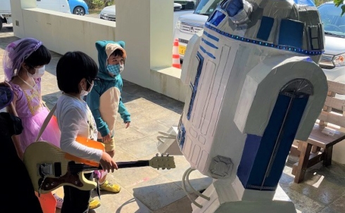 今年はさらにパワーアップし、段ボールをベースに手作りし、R2-D2に変身!
