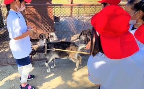 遊具やブランコ、鬼ごっこ等で元気いっぱい遊んだり、ヤギのお散歩
