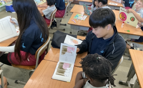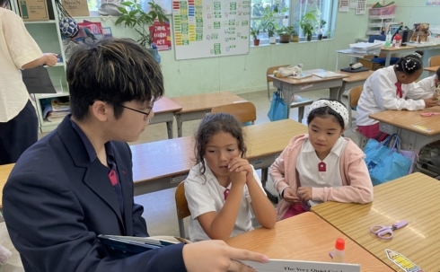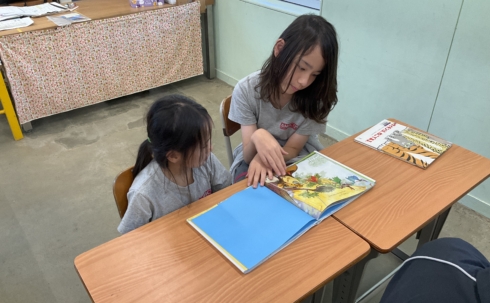 優しい声でお話を読み進める上級生の姿に、下級生も目を輝かせて聞き入っていました。