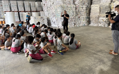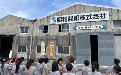 昭和製紙工場では、古紙が「地球釜」と呼ばれる大きな機械で溶かされ、洗浄・漂白を経て「ジャンボ原紙」となるまでの工程を見学しました。