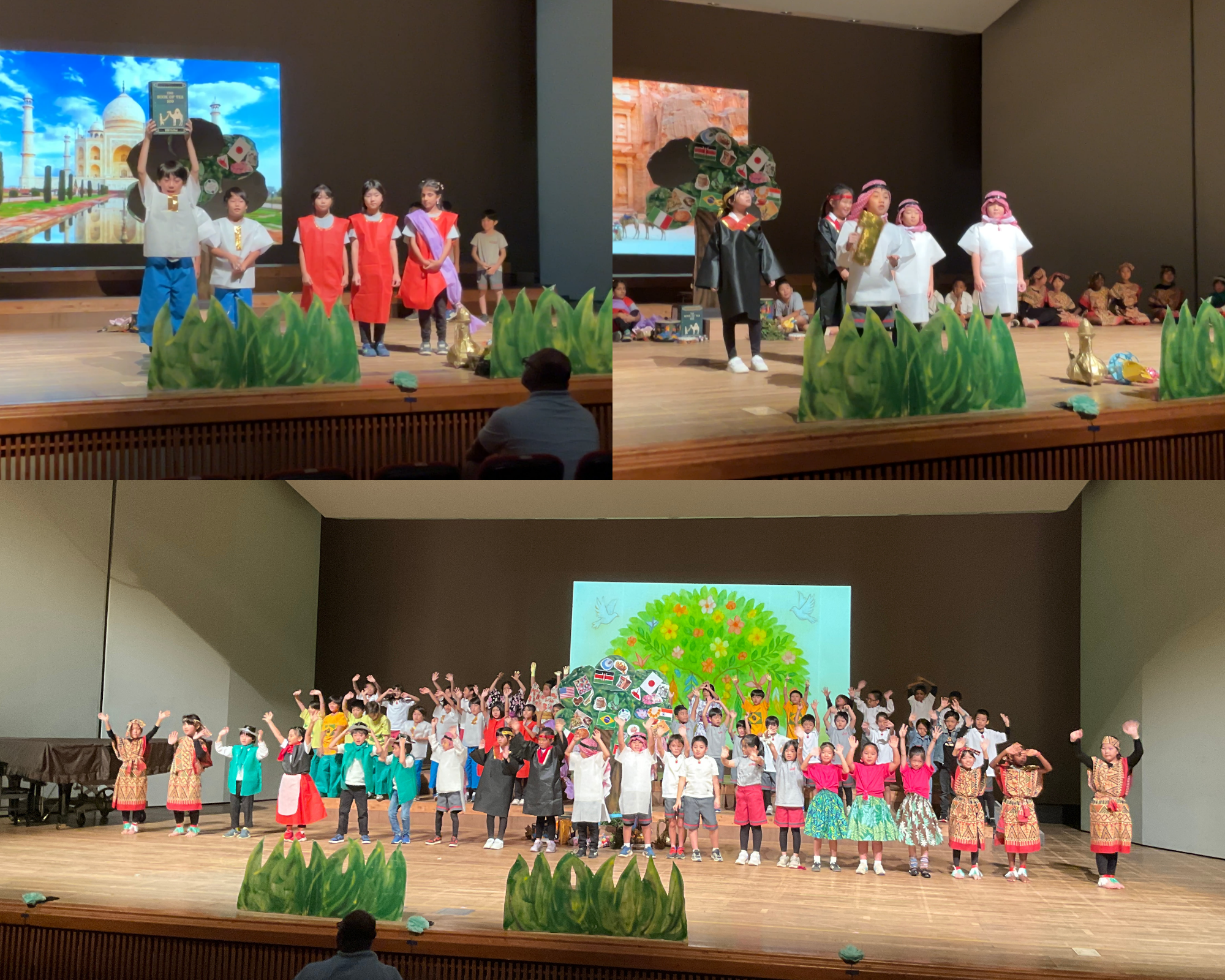 3年生は、「平和の木」。世界中の人々と協力しながら、友情や希望、世界の平和を願う気持ちを、言葉と歌で届けました。
