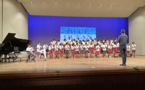 4年生は、リコーダーと三線による演奏に加え、合唱も披露しました。