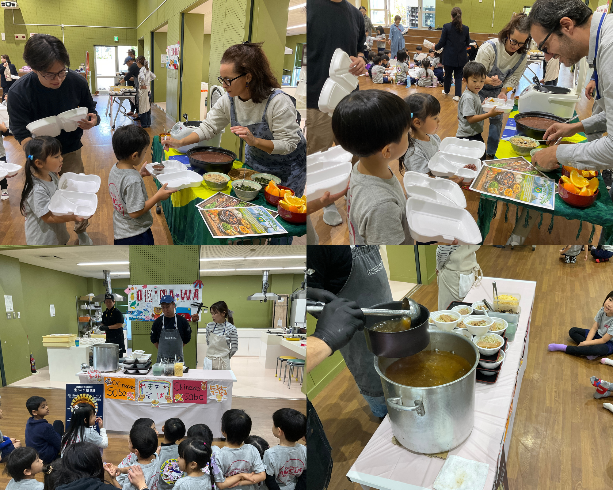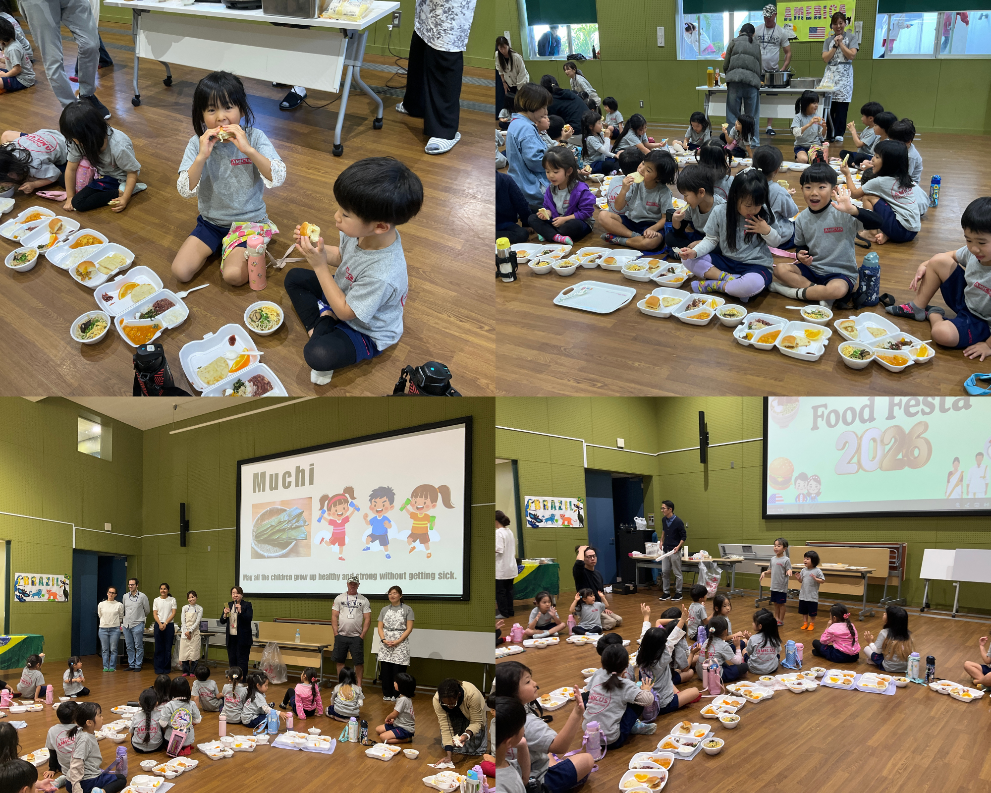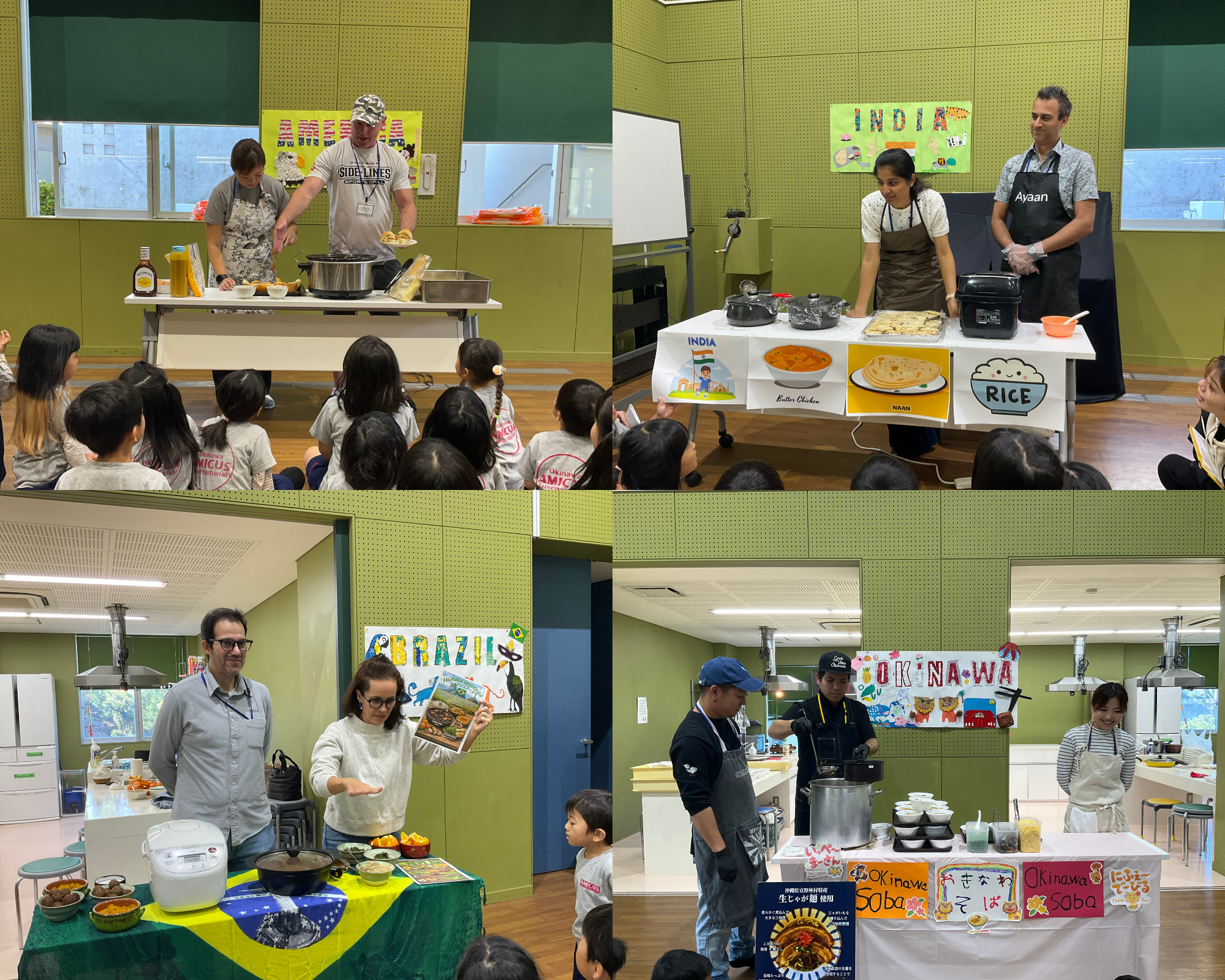 今回は、さまざまな国や地域にルーツを持つ園児・保護者が集うアミークスならではの取り組みとして、保護者の皆さまにご協力いただき、 アメリカ、インド、ブラジル、沖縄 の料理を提供していただきました。