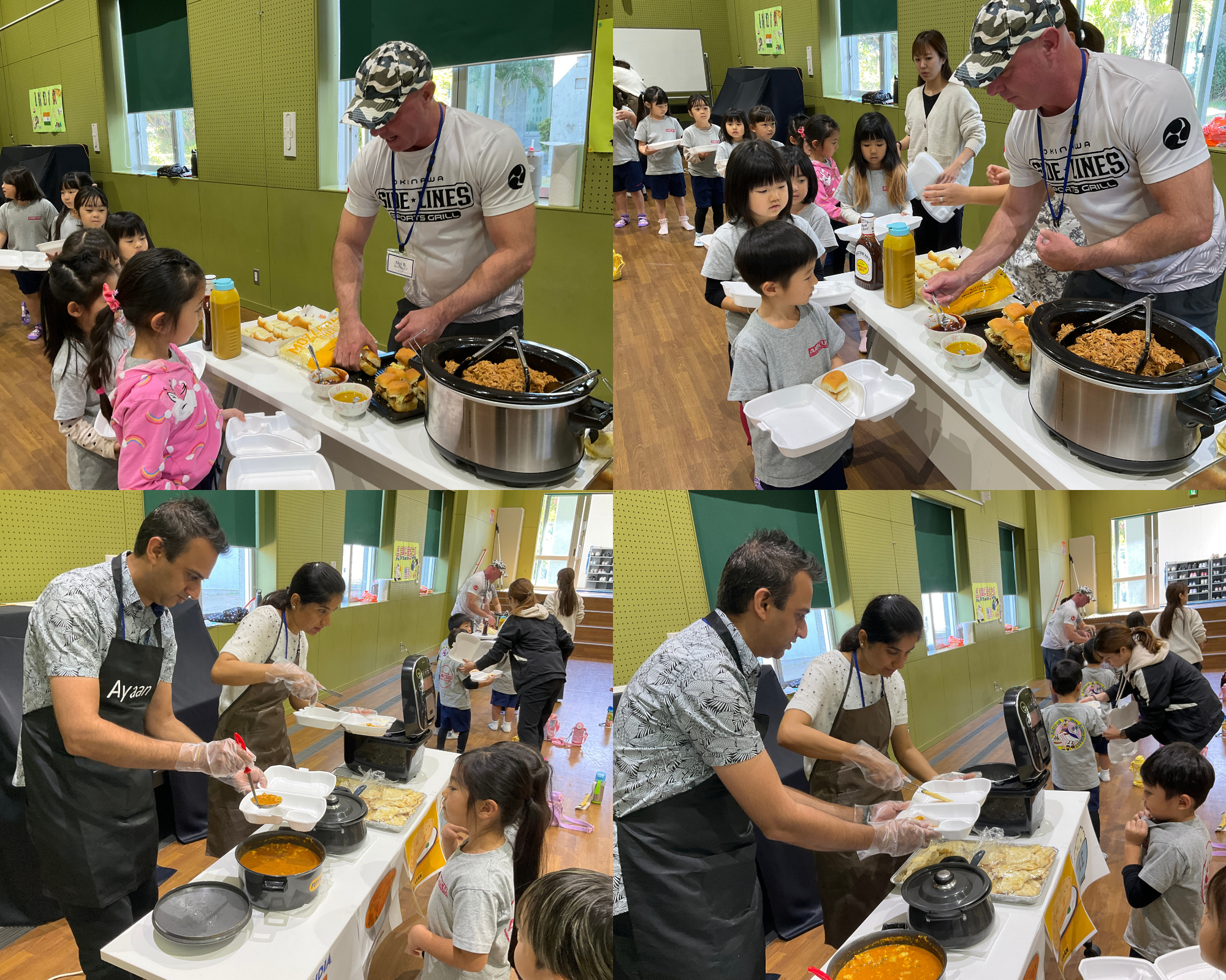 今回は、さまざまな国や地域にルーツを持つ園児・保護者が集うアミークスならではの取り組みとして、保護者の皆さまにご協力いただき、 アメリカ、インド、ブラジル、沖縄 の料理を提供していただきました。