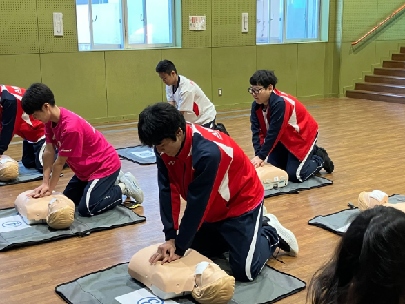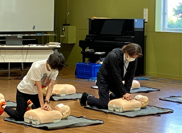 生徒たちは交代で胸骨圧迫の練習を実施し、緊急時にとても重要となるCPRの知識を全員が習得しました。