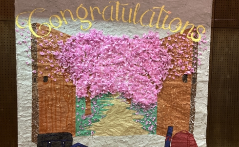この卒業式は、下級生で構成されたGPC(卒業式準備委員会)メンバーの努力なしでは成立しません!この日のために力を合わせて、ちぎり絵の大作を作成しました!