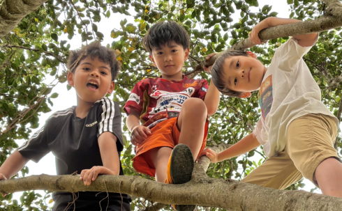 運動場や園庭を元気いっぱいに駆け回ったり、