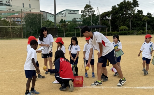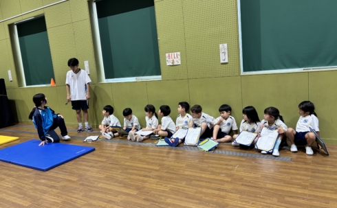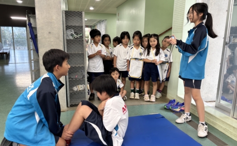 記録を測ったり、ボール投げのコツを伝えたりと、9年生の頼もしさが光っていました。
