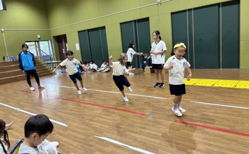 まだ少し不安そうな表情の子どもたちのそばには、いつも中学生の先輩たちの姿がありました!
