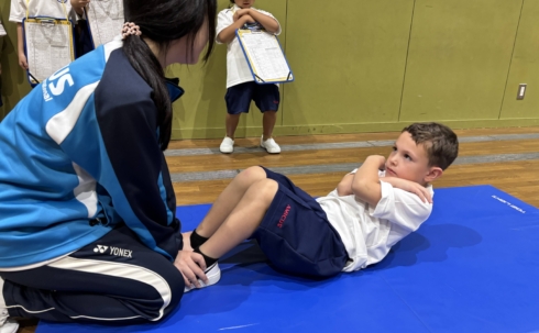 7年生のサポートに支えられ、落ち着いた雰囲気の中で測定を行うことができました。